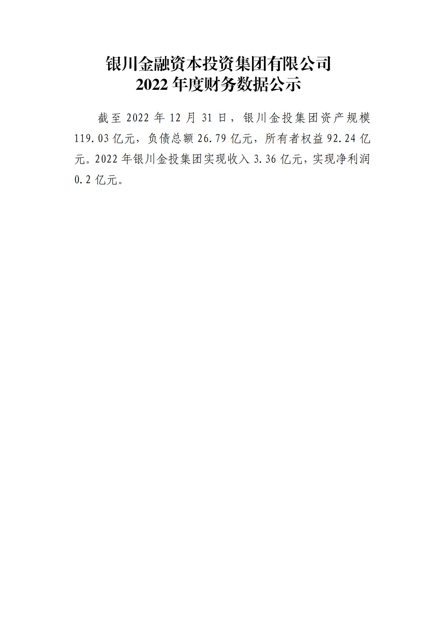 銀川金融資本投資集團有限公司2022年度財務數(shù)據(jù)公示